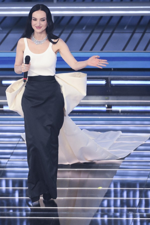 Il podio dei meglio vestiti è tutto al femminile con Arisa, Giorgia Cardinaletti e Ditonellapiaga che animano la serata con classe ed eleganza. Ancora in Des Phemmes e con gioielli Crivelli, Arisa si affida al bianco e nero: un abbinamento apparentemente semplice che sorprende nella parte posteriore, dove un maxi-fiocco con strascico aggiunge un tocco drammatico e scenografico all’esibizione (ma complica, e non di poco, la discesa dalla scala dell’Ariston).