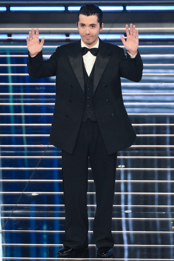 Al quinto posto, Fulminacci in Ami Paris che, finalmente, abbandona l’aria da contabile per regalarci un completo impeccabile, elegantissimo con panciotto e papillon, accompagnato da capelli “ingellati” e sbarazzini, da bad boy.